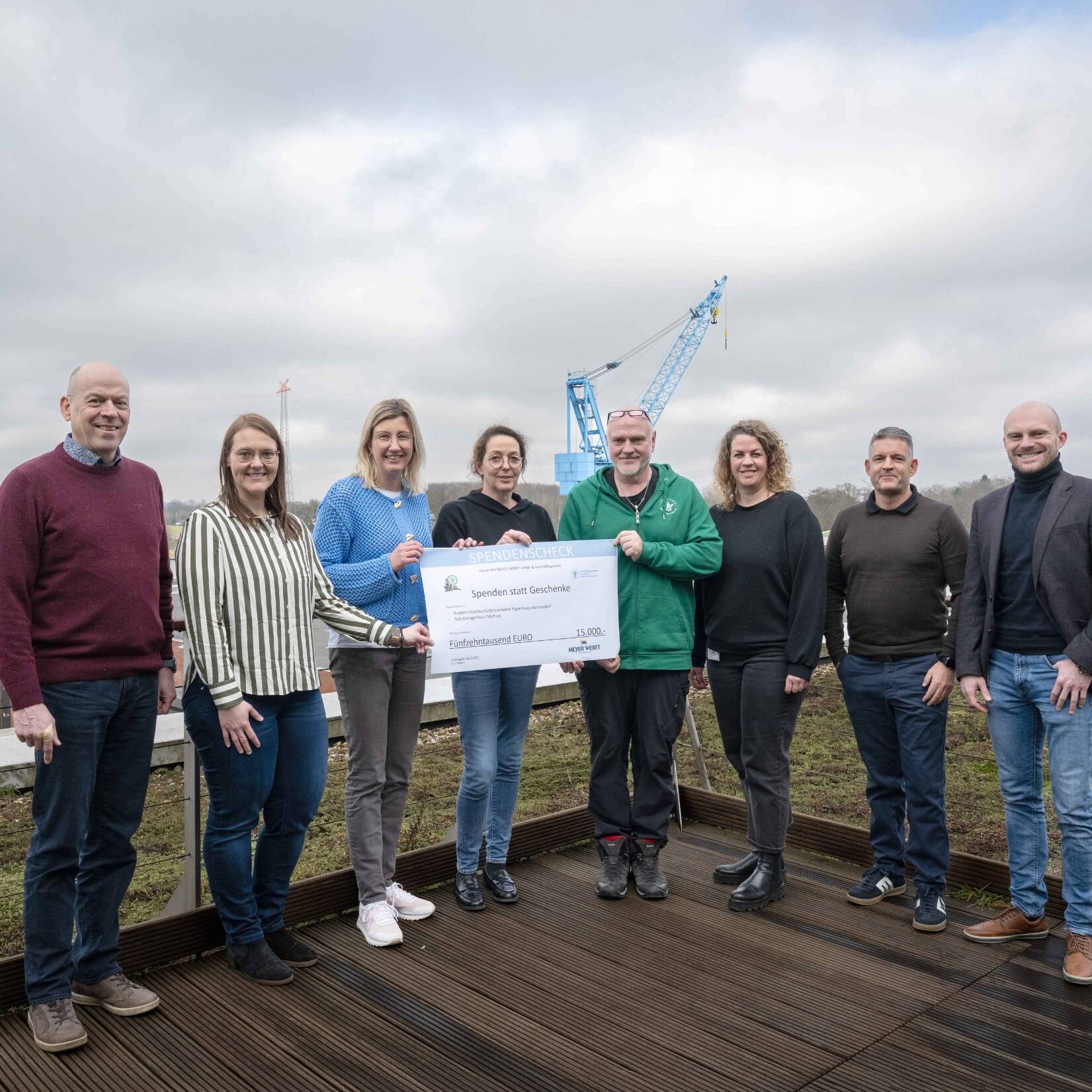 Spendenübergabe bei der Meyer Werft: 15.000 € für Kinder und Familien in Papenburg